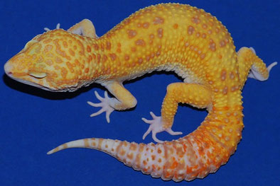 Der Typhoon hat eine gelbe/ orangene Grundfarbe, je nach Tangerine Einfluss. Die Fleckenzeichnung ist rötlich- orange bis beige/braun je nach Haltungstemperatur und Qualität der Tiere. Eclipse